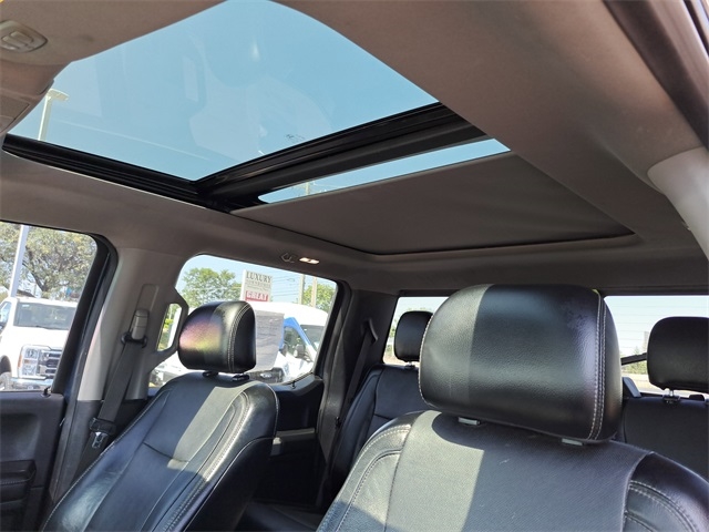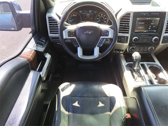 THIS VEHICLE INCLUDES THE FOLLOWING FEATURES AND OPTIONS: Equipment Group 502A Luxury (110V/400W Outlet, 2nd Row Heated Seats, Automatic High Beam w/Rain-Sensing Wipers, BLIS Blind Spot Information System, Heated Steering Wheel, Leather-Trimmed Bucket Seats, LED Side-Mirror Spotlights, Power Glass Sideview Mirr w/Chrome Skull Caps, Power Tilt/Telescoping Steering Column w/Memory, Quad Beam LED Headlamps & Taillamps, Radio: Sony Single CD w/HD & SiriusXM Satellite, Remote Start System, Reverse Sensing System, Universal Garage Door Opener, and Voice-Activated Navigation), GVWR: 6,500 lbs Payload Package, Lariat Chrome Appearance Package, 4WD, 18" Machined-Aluminum Wheels, 3.55 Axle Ratio, 4-Wheel Disc Brakes, 7 Speakers, ABS brakes, Adjustable pedals, Air Conditioning, Alloy wheels, AM/FM radio: SiriusXM, Auto-dimming door mirrors, Auto-dimming Rear-View mirror, Automatic temperature control, Brake assist, Bumpers: chrome, CD player, Class IV Trailer Hitch Receiver, Compass, Delay-off headlights, Driver door bin, Driver vanity mirror, Dual front impact airbags, Dual front side impact airbags, Electronic Stability Control, Exterior Parking Camera Rear, Front anti-roll bar, Front Center Armrest w/Storage, Front dual zone A/C, Front fog lights, Front reading lights, Front wheel independent suspension, Fully automatic headlights, Heated door mirrors, Heated front seats, Illuminated entry, Leather-Trimmed 40/20/40 Front Seat, Low tire pressure warning, Memory seat, Occupant sensing airbag, Outside temperature display, Overhead airbag, Overhead console, Panic alarm, Passenger door bin, Passenger vanity mirror, Pedal memory, Power door mirrors, Power driver seat, Power passenger seat, Power steering, Power windows, Radio data system, Radio: Single-CD w/SiriusXM Satellite, Rear reading lights, Rear seat center armrest, Rear step bumper, Rear window defroster, Remote keyless entry, Security system, Speed control, Speed-sensing steering, Split folding rear seat, Steering wheel mounted audio controls, SYNC with MyFord Touch, Tachometer, Telescoping steering wheel, Tilt steering wheel, Traction control, Trip computer, Turn signal indicator mirrors, Variably intermittent wipers, Ventilated front seats, and Voltmeter.