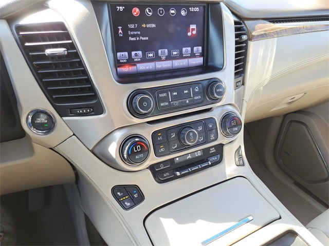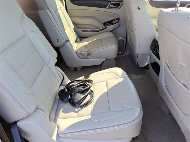 THIS VEHICLE INCLUDES THE FOLLOWING FEATURES AND OPTIONS: Enhanced Driver Alert Package (Forward Collision Alert Sensor Indicator, Intellibeam Automatic High Beam On/Off Headlamps, Lane Keep Assist, and Safety Alert Driver Seat), Enhanced Security Package (Theft-Deterrent Alarm System, Unauthorized Entry Electrical Theft Deterrent Sys., Vehicle Inclination Sensor, and Vehicle Interior Movement Sensor), Magnetic Ride Control Suspension Package, Memory Package, Open Road Package (3rd Row DVD Screen, Power Tilt-Sliding Sunroof w/Express-Open/Close, and Rear Seat Blu-Ray/DVD Entertainment System), Preferred Equipment Group 5SA (17" Disc/Disc VAC Power Brakes, 5 Auxiliary 12-volt Power Outlets, Black Assist Steps w/Chrome Strip, Hands Free Power Liftgate, Heated Leather-Wrapped Steering Wheel, Inside Rear-View Auto-Dimming Mirror, Integrated Trailer Brake Controller, OnStar Basic Plan For 5 Years, OnStar w/4G LTE, Passive Entry System, Power Release Second Row Bucket Seats, Power Tilt & Telescopic Steering Column, Power-Adjustable Pedals For Accelerator & Brake, Push Button Keyless Start, Rear Cross-Traffic Alert, Remote Keyless Entry, Side Blind Zone Alert w/Lane Change Alert, Universal Home Remote, and Wireless Charging), 4WD, 10 Speakers, 3.23 Axle Ratio, 3rd row seats: split-bench, 4-Wheel Disc Brakes, ABS brakes, Adaptive suspension, Adjustable pedals, Air Conditioning, All-Weather Floor Mats, Alloy wheels, AM/FM radio: SiriusXM, Apple CarPlay, Auto High-beam Headlights, Auto-dimming door mirrors, Auto-dimming Rear-View mirror, Automatic temperature control, Bodyside moldings, Bose Centerpoint Premium 10-Speaker Surround Sound, Brake assist, Bumpers: body-color, CD Player, CD player, Compass, Delay-off headlights, Driver door bin, Driver vanity mirror, Dual front impact airbags, Dual front side impact airbags, Electronic Stability Control, Emergency communication system: OnStar, Exterior Parking Camera Rear, Front anti-roll bar, Front Bucket Seats, Front Center Armrest, Front dual zone A/C, Front fog lights, Front reading lights, Front wheel independent suspension, Full-Feature Reclining Bucket Seats, Fully automatic headlights, Garage door transmitter, Genuine wood console insert, Genuine wood dashboard insert, Genuine wood door panel insert, Head-Up Display, Heated & Cooled Driver & Front Passenger Seats, Heated door mirrors, Heated front seats, Heated rear seats, Heated steering wheel, High-Intensity Discharge Headlights, Illuminated entry, Leather Shift Knob, Low tire pressure warning, Memory seat, Navigation System, Occupant sensing airbag, Outside temperature display, Overhead airbag, Overhead console, Panic alarm, Passenger door bin, Passenger vanity mirror, Pedal memory, Perforated Leather-Appointed Seat Trim, Polished Exhaust Tip, Power door mirrors, Power driver seat, Power Liftgate, Power passenger seat, Power steering, Power windows, Premium audio system: IntelliLink, Pwr Retractable Assist Steps w/Perimeter Lighting, Radio: AM/FM/SiriusXM/HD w/Navigation, Rain sensing wipers, Rear air conditioning, Rear anti-roll bar, Rear reading lights, Rear window defroster, Rear window wiper, Remote keyless entry, Roof rack: rails only, Security system, SiriusXM Satellite Radio, Speed control, Speed-sensing steering, Split folding rear seat, Spoiler, Steering wheel memory, Steering wheel mounted audio controls, Tachometer, Telescoping steering wheel, Tilt steering wheel, Traction control, Trip computer, Turn signal indicator mirrors, Variably intermittent wipers, Ventilated front seats, Voltmeter, Wheels: 20" x 9" Ultra Bright Machined Aluminum, and Wheels: 22" x 9" 6-Spk Chrome Multi-Feature Design.